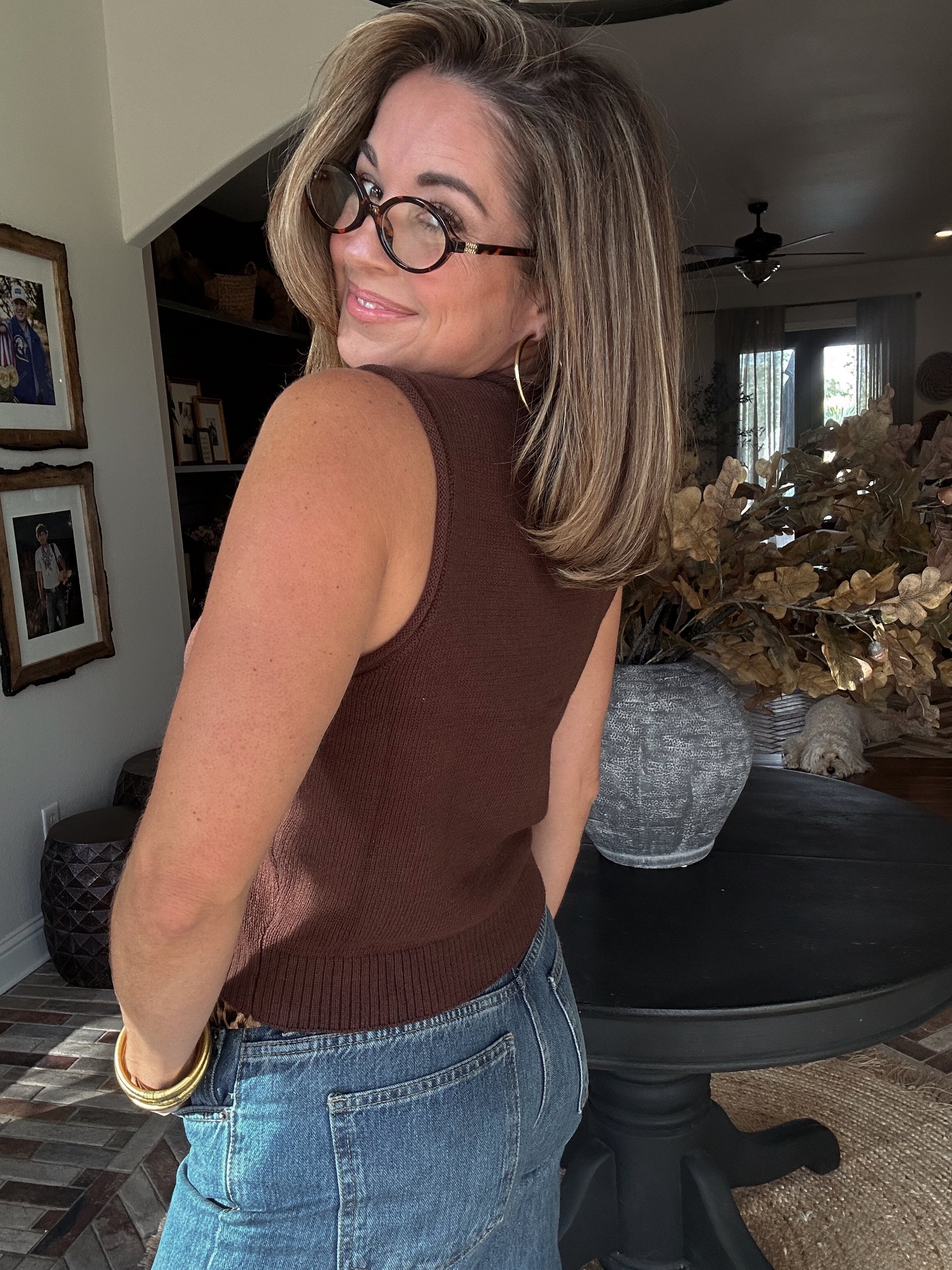 •SLEEVELESS BUTTON DOWN KNIT CARDIGAN TOP