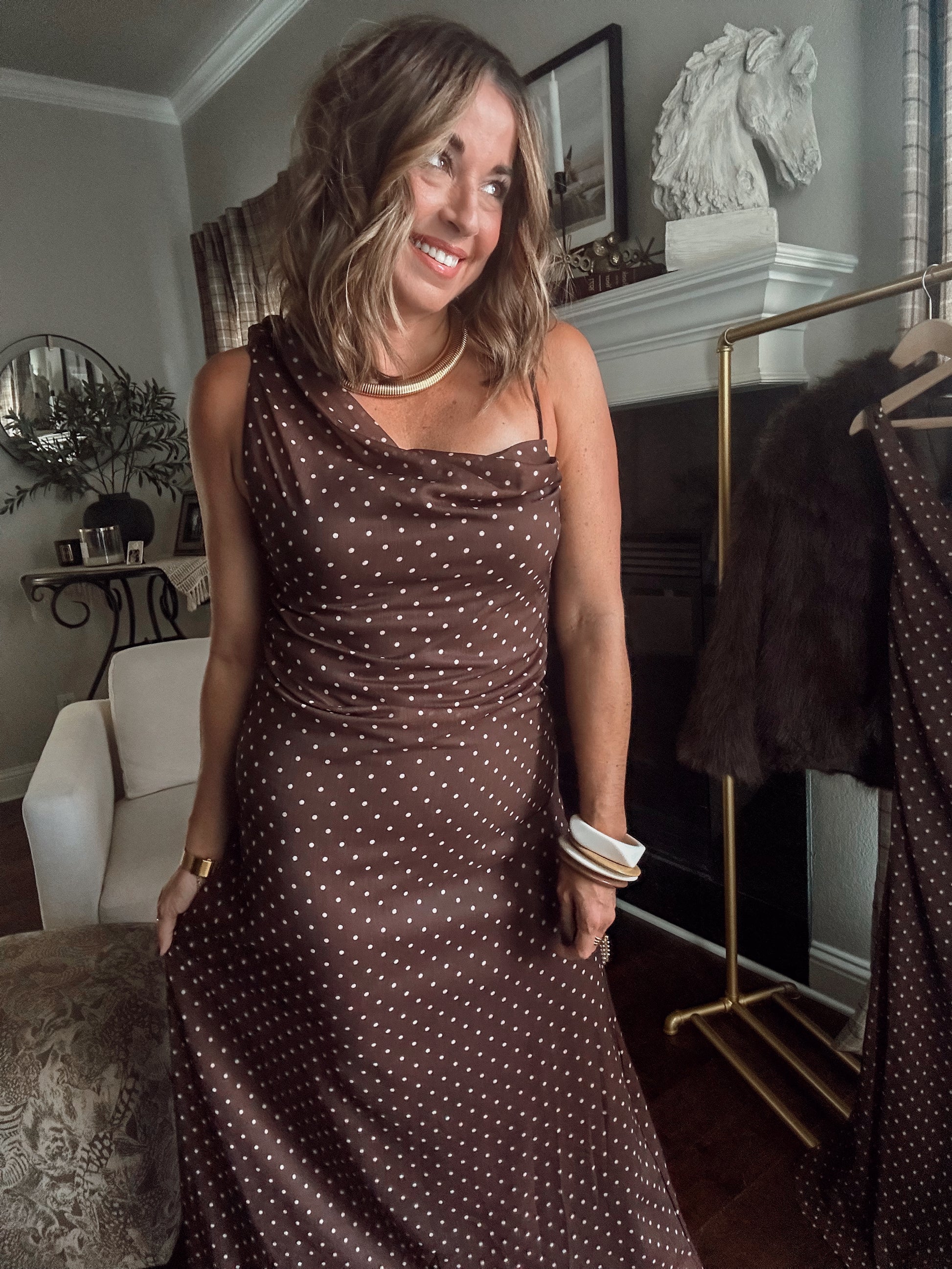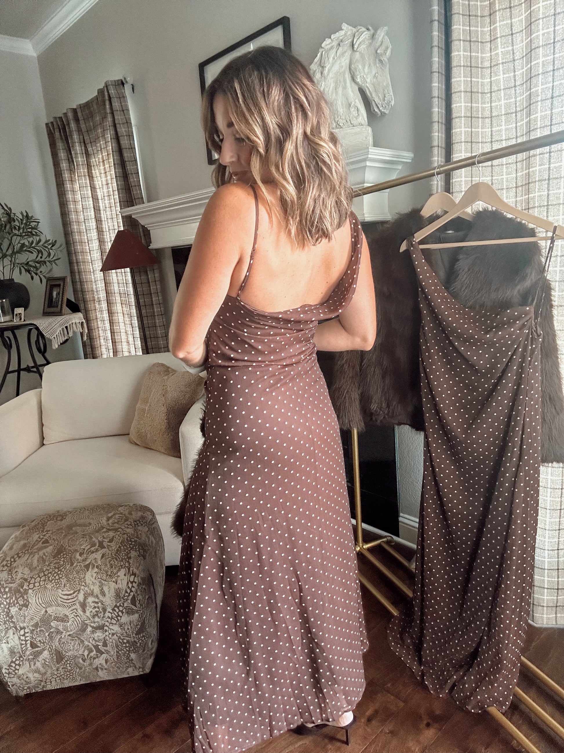 •GORGEOUS POLKA DOT ONE SHOULDER STRAP MAXI DRESS